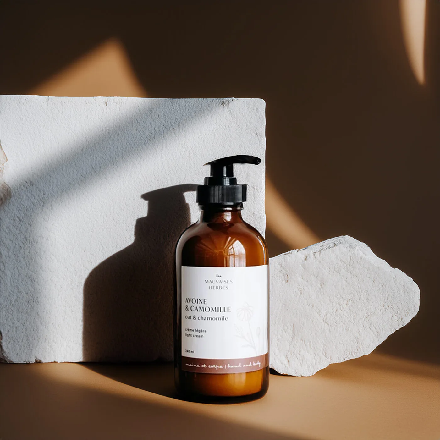 Découvrez la Crème Mains & Corps Hydratante, une formule légère idéale pour hydrater votre peau en douceur, la laissant soyeuse et satinée. Enrichie d’avoine et de camomille, cette crème est spécialement conçue pour les peaux sensibles. Ses délicates notes florales et boisées vous transporteront en pleine nature à chaque application.
